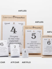 La versione che stai guardando ora è il formato A6 e misura 10 x 14 cm; è compatibile con il supporto del Calendario Filosofico 2025 formato A6.