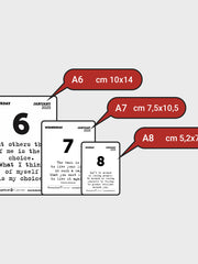 La versione che stai guardando ora è il formato A6 e misura 10 x 14 cm; è compatibile con tutti i nostri supporti per calendari formato A6.