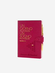 Per essere sempre pronti a scrivere al volo, l'agenda possiede un passante portapenne ed è venduta abbinata ad un'elegante biro oro a scatto.