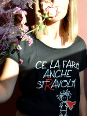 T- SHIRT - MAGLIETTA NERA DA DONNA "CE LA FARO’ ANCHE STRAVOLTA"