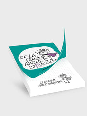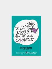 Su ogni pagina dei nostri blocchetti c’è la frase "Ce la farò anche stravolta” abbinata all'immagine femminile che si vede in copertina.