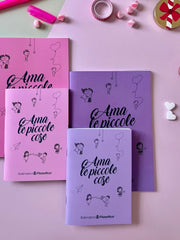 “Ama le piccole cose” è l’invito che trovi in copertina, e troviamo sia perfetto per i nostri nuovi quaderni: semplici ma adorabili nei loro colori pastello, con pagine ornate dalle illustrazioni di BIcreative e dalle nostre frasi.